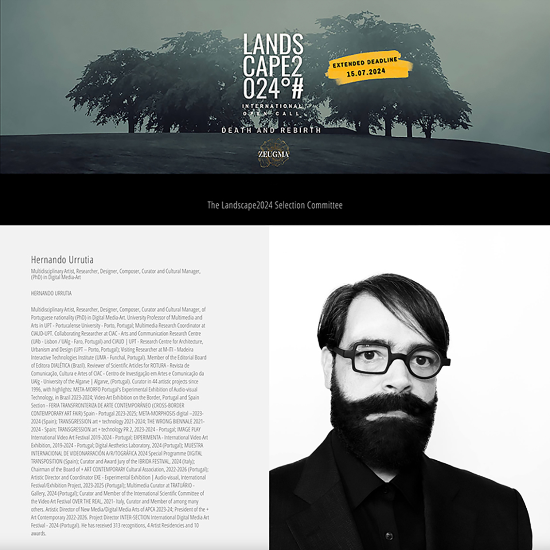 For the internationalization of the good work done in the Curatorship of IMAGE PLAY and in the framework of the international cultural exchange the Director and Curator of IMAGE PLAY ►International Video Art Festival PhD. Hernando Urrutia, was invited by the Artistic Directors Anacleto Vitolo and Francesco Giannico of the organization "Collettivo Zeugma" to be Member of the Selection Committee, as Selection and Award Jury of the Open Call for the IV Edition of LANDSCAPE | DEATH AND REBIRTH, at 2024, in Salerno - Italy. In this second edition the project became international, for which it required not only having a panel of national juries from Italy, but also international ones, specialists and experts in the international curation of sound and visual narratives.