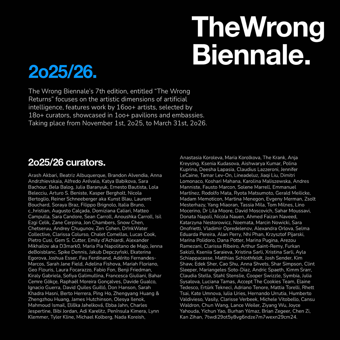 Pelo trabalho desenvolvido em IMAGE PLAY e no âmbito do intercambio cultural internacional o Diretor e Curador do IMAGE PLAY ►International Video Art Festival Dr. Hernando Urrutia foi convidado pelo Curador Geral David Quiles Guilló a participar com um projeto como Curador e Artista para a 6th Edition of the Wrong Biennale - 2025/2026. (1 de novembro de 2025 até 31 de março de 2026)