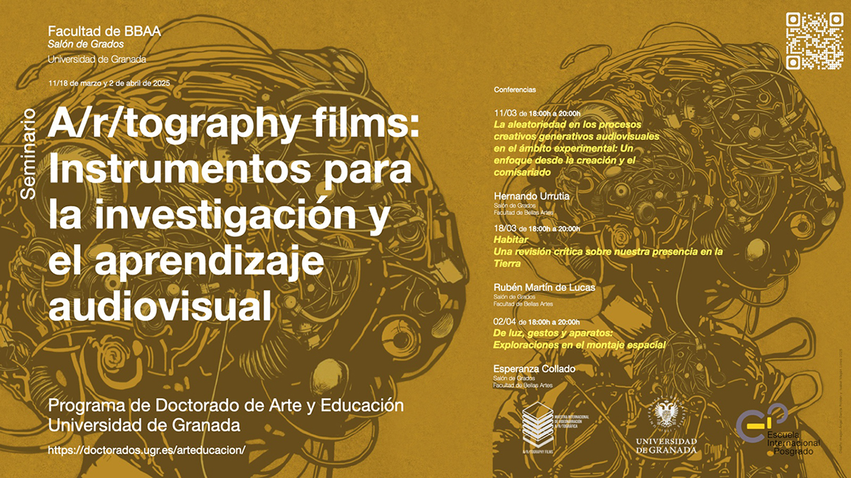 The Director and Curator of IMAGE PLAY International Video Art Festival, Prof. Dr. HERNANDO URRUTIA, has been invited as Keynote Speaker MAIN SPEAKER at the Seminar: A/r/tography Films: Tools for Audiovisual Research and Learning in the Postgraduate Doctorate in Arts and Education at the University of Granada, organised as a Training Activity by the Doctorate Programme in Arts and Education at the University of Granada (Granada, Spain) on 11 March 2025.