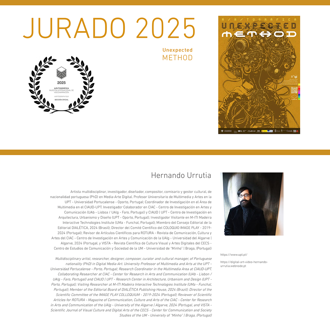 Hernando Urrutia é convidado como Júri de Seleção da 11ª EDIÇÃO DE "A/R/TOGRÁFICA - MOSTRA INTERNACIONAL DE VIDEONARRAÇÃO" NA ESPANHA. (7 de março ao 20 de junho de 2025)