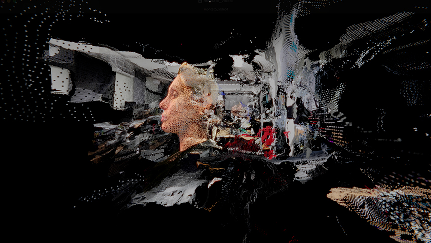 The result is not a simple mesh or geometry, as in the traditional photogrammetry process I have long experimented with, but rather a point cloud of light and color. This cloud of points is then reprocessed and altered by me in 3D, transforming the precise and impeccable digital recording of the volumes of the physical world offered by NeRF technology into a dreamlike journey.